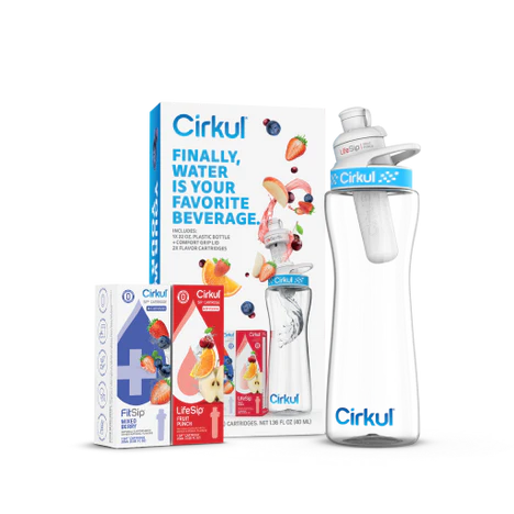 22oz. Plastic Bottle Starter Kit & Blue Comfort Grip Lid